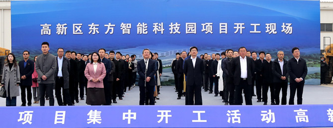 3月13日上午,烟台市举办2021年全市114个重大项目集中开工仪式,拉开了烟台万亿投资的序幕。活动采用视频连线的形式,分为1个主会场,12个分会场。其中高新区分会场设在公司上海展奥新材料科技有限公司智能科技园现场,这标志着东方智能科技园区正式开工建设。